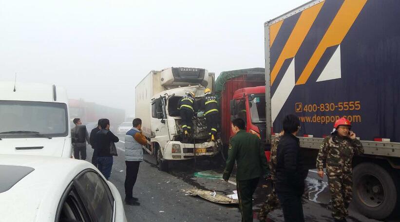 另據(jù)河南交通廣播,今天(11月14日)連霍高速西向東方向,距開封下站口3.5公里左右,發(fā)生多車連環(huán)追尾事故,車損很嚴(yán)重,有人員受傷。