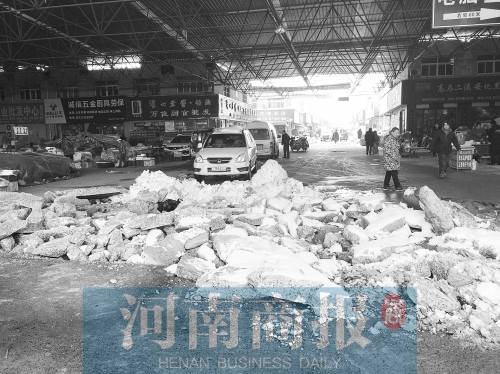 “我們市場(chǎng)大門(mén)被堵了一個(gè)多星期了,車(chē)輛進(jìn)不去也出不來(lái),地也被挖掘機(jī)搗碎了,快來(lái)看看吧?!庇猩虘粝蚝幽仙虉?bào)記者反映。24日上午,河南商報(bào)記者趕到位于南三環(huán)與鄭密路交叉口南的鄭州市農(nóng)副產(chǎn)品交易中心。到底發(fā)生了什么?是何原因讓市場(chǎng)的商戶如此焦急?