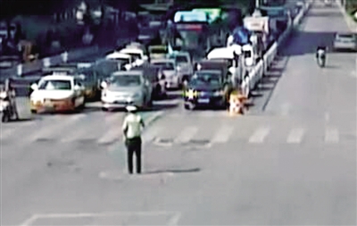 從視頻看,7月23日,南陽(yáng)市某路口,20歲輔警王宏釗在執(zhí)勤。高溫下,他的身體出現(xiàn)不適,一開(kāi)始半蹲下來(lái),低著頭,后來(lái)又堅(jiān)持站起。最后還是體力不支,跪地伏倒在路中央安全島的白圈內(nèi)。