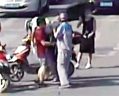 騎電動(dòng)車(chē)經(jīng)過(guò)的兩名男子見(jiàn)狀,立刻上前將王宏釗攙扶起來(lái),緊接著又有幾位市民趕到。一名穿著紅色上衣的男子將王宏釗扛在肩頭,一位女士給王宏釗打傘遮陽(yáng),眾人一起把王宏釗轉(zhuǎn)移到路邊。聞?dòng)嵹s來(lái)的其他交警在這個(gè)路口補(bǔ)位,繼續(xù)指揮交通。