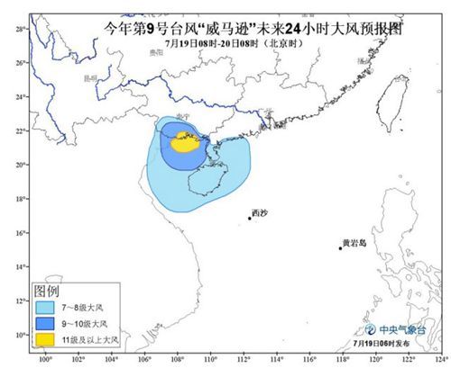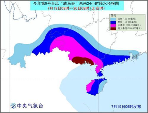 19日08時至20日08時,南海西北部、瓊州海峽、北部灣以及海南沿海、廣東西部沿海、廣西南部及沿海將有7-9級大風(fēng),其中北部灣北部、廣東雷州半島西部沿海、廣西沿海將有10-12級大風(fēng),臺風(fēng)中心經(jīng)過的附近海域或地區(qū)的風(fēng)力有13-15級,陣風(fēng)可達(dá)16-17級;海南大部、廣東西南部、廣西南部和西部、云南東南部等地有暴雨或大暴雨,其中,廣西南部等地的局部地區(qū)有特大暴雨(250-400毫米)。
