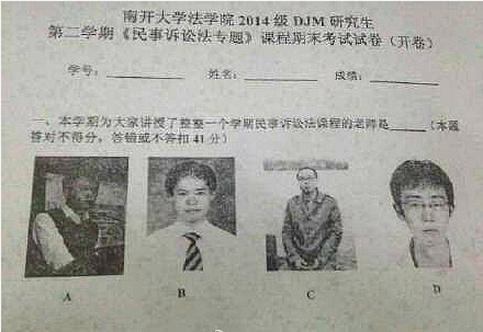 南開大學法學院某科目的期末試卷被學生上傳,瞬間引爆學生圈。同學們表示:“內(nèi)傷了”“臉盲怎么辦”“想想真的很有道理?。 薄灿型瑢W吐槽,“老師您用的是大學時候的證件照,現(xiàn)在不長這樣了…”這還真是一個刷臉的時代啊
