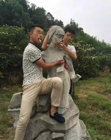 四川宜賓趙場佛現(xiàn)山景區(qū)花開正艷,卻出現(xiàn)了與美景相悖的不文明行為。兩男子近日對(duì)一婦女雕像又是摟抱又是摸胸。據(jù)了解,雕像是兩年前計(jì)生文化進(jìn)景區(qū)時(shí)設(shè)置的。目前,拍攝時(shí)間和兩男子身份尚不明確??达L(fēng)景還是煞風(fēng)景?