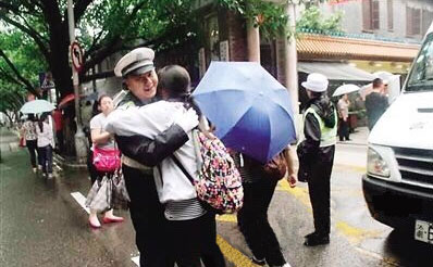 4、女生高考前緊張 向執(zhí)勤警察求擁抱