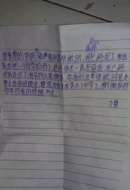 (湖南綏寧小學(xué)生跳樓身亡,遺書稱遭同學(xué)家長逼迫,一張疑似絕筆信的照片在網(wǎng)上流傳,內(nèi)容為一名學(xué)生向媽媽臨終告別,后面還附有多張醫(yī)院搶救照,遺書的作者是湖南綏寧縣長鋪二小5年級的一名學(xué)生,目前已經(jīng)跳樓身亡。)