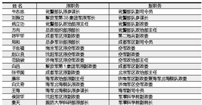 七大軍區(qū)中,南京、成都、北京以及沈陽軍區(qū)的副政委職務(wù)均有變動。例如,成都軍區(qū)原副政委張書國調(diào)往北京軍區(qū)出任政治部主任,接替他的是南京軍區(qū)原副政委白呂;沈陽軍區(qū)的原副政委侯賀華外調(diào)至軍事科學院;另如,成都軍區(qū)原副政委陳平華調(diào)至二炮任副政委;姚立功也是在武警政治部主任與武警部隊副政委間調(diào)整。此外,空軍內(nèi)所涉及的副大軍區(qū)級調(diào)整也都是與政治干部有關(guān)系。
