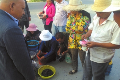 現(xiàn)場(chǎng)收購盜采者采摘來的黑枸杞。