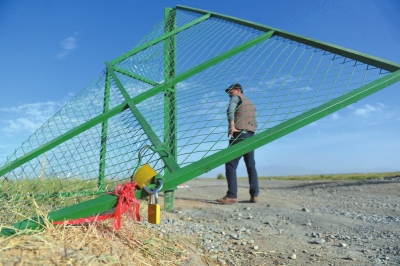 牧民新建的草場(chǎng)圍欄大門被盜采者破壞掀翻。牧民新建的草場(chǎng)圍欄大門被盜采者破壞掀翻。