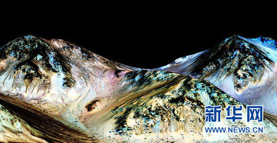 9月28日,在美國首都華盛頓,這張由美國航天局和亞利桑那大學聯(lián)合發(fā)布的圖片顯示,火星山丘上的“季節(jié)性斜坡紋線”是火星表面有液態(tài)水的有力證據(jù)。美國航天局28日宣布,在火星表面發(fā)現(xiàn)了有液態(tài)水活動的“強有力”證據(jù)。