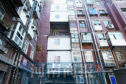 金水區(qū)崗杜街一號(hào)院東南角兩棟樓之間,4間白色板房分別“懸”在二、三、五、六樓的外側(cè),在旁邊紅色墻體的映襯下格外顯眼。板房下面就是單元樓唯一的進(jìn)出口,“萬(wàn)一哪天掉下來(lái),砸到人可咋辦?”劉女士說(shuō)。