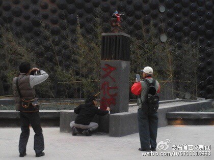 據(jù)臺(tái)媒報(bào)道,臺(tái)北“故宮”南院前天開(kāi)幕試營(yíng)運(yùn),成龍贈(zèng)送十二生肖獸首公共藝術(shù)給故宮。但有媒體報(bào)道是統(tǒng)戰(zhàn),今天傍晚4、5點(diǎn)有一男一女突然朝龍和馬獸首上倒紅漆,被人發(fā)現(xiàn)報(bào)警,目前警方已將兩人帶回嘉義縣太保分駐所偵訊中。