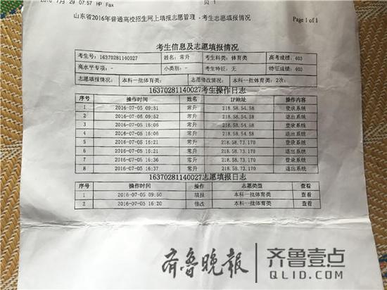 后來,他們從青島市招生辦網(wǎng)上填報(bào)志愿系統(tǒng)了解到,7月5日上午10點(diǎn)左右報(bào)完志愿后,下午4點(diǎn)20分,常升的志愿被修改,一志愿被改為了魯東大學(xué)社會(huì)體育指導(dǎo)與管理專業(yè)。