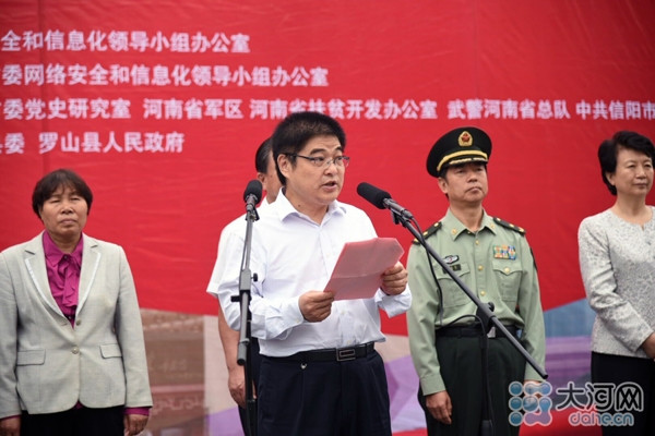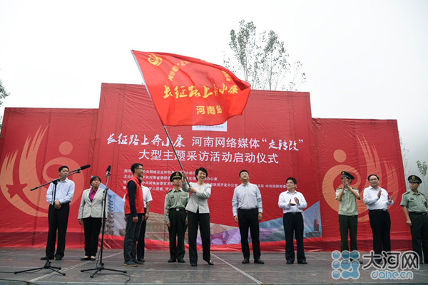 大河網(wǎng)訊(河南日?qǐng)?bào)記者 胡巨成 大河網(wǎng)記者 宋向樂 范昭 通訊員劉宏冰)9月26日,按照中央網(wǎng)信辦統(tǒng)一部署,“長征路上奔小康”河南網(wǎng)絡(luò)媒體“走轉(zhuǎn)改”主題采訪活動(dòng)在紅25軍長征出發(fā)地——羅山縣何家沖啟動(dòng)。省委常委、宣傳部長趙素萍出席啟動(dòng)儀式為采訪團(tuán)授旗,并勉勵(lì)大家多走多看,發(fā)揚(yáng)長征精神,講好長征故事,將精彩報(bào)道奉獻(xiàn)給廣大網(wǎng)友。中央網(wǎng)信辦網(wǎng)絡(luò)新聞信息傳播局副局長劉沖出席啟動(dòng)儀式并講話,省委宣傳部副部長、省委網(wǎng)信辦主任何彧致辭,省軍區(qū)副政委兼政治部主任冷志義等出席啟動(dòng)儀式。