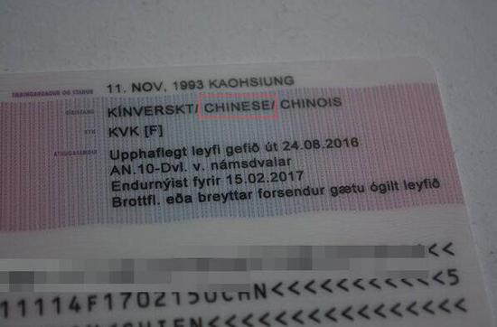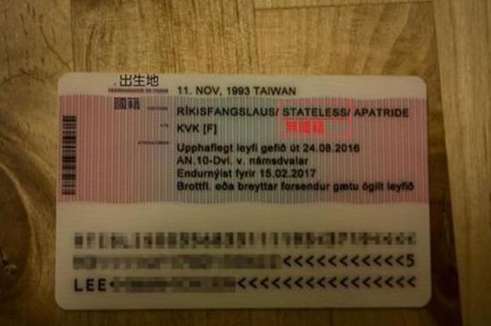原標(biāo)題:臺(tái)灣女生不滿(mǎn)冰島居留證被列中國(guó)籍 結(jié)果被改為“無(wú)國(guó)籍”