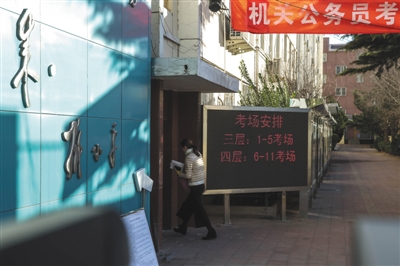 今年國(guó)考北京全市共設(shè)置了100個(gè)考點(diǎn)。昨日,記者來(lái)到北京林業(yè)大學(xué)第二教學(xué)樓的考點(diǎn)。11時(shí)許,考生結(jié)束了行政能力測(cè)試的考試離開(kāi)考場(chǎng)。一名考生告訴記者,今年的考題“數(shù)量關(guān)系”部分難度不小,自己沒(méi)有答完?!拔业谝淮螀⒓訃?guó)考,也做過(guò)以前的考卷,但感覺(jué)今年還是比較難,數(shù)學(xué)題有點(diǎn)像奧數(shù),后面沒(méi)做完,有好多是蒙的。”這位考生說(shuō)。