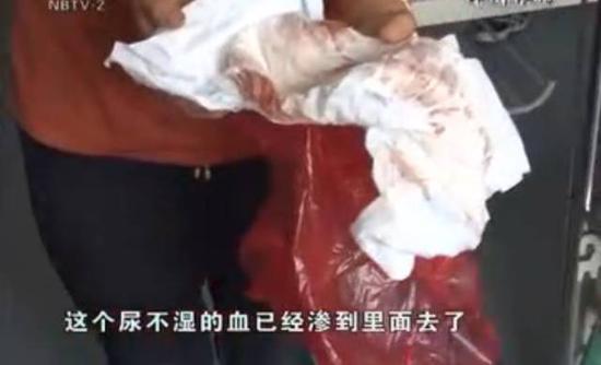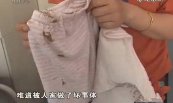 有個(gè)人我們是認(rèn)識(shí)的,他也是在菜場(chǎng)里做生意的,有的時(shí)候會(huì)抱女兒玩。這回也是抱女兒出去玩,差不多40分鐘才回來。當(dāng)時(shí)寶寶手上拿著糖但是目光很呆滯,我給她換衣服,碰到她下體,她有點(diǎn)不高興,尿不濕的血已經(jīng)滲到里面去了……