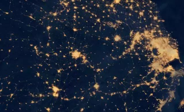 這份圖上,最閃亮的兩部分區(qū)域分別是珠三角和長三角,這也是中國目前最為成熟的兩大城市群,而作為傳統(tǒng)三大城市群之一的京津冀除了北京、天津之外,其他都呈散點(diǎn)排列,至于新晉的中原等城市群,規(guī)模上還不明顯。