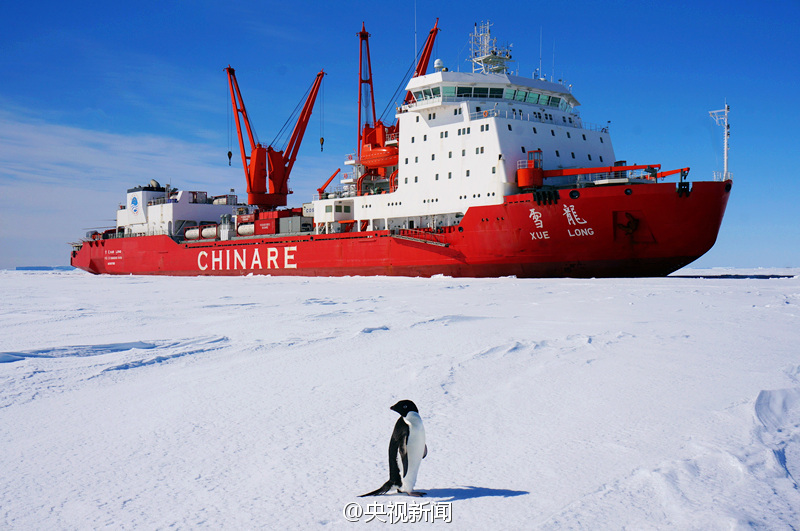 初夏的南極依舊冰山林立,陸緣冰厚度可達(dá)1米多,我國(guó)第31次南極科考隊(duì)正在南極冰蓋區(qū)域進(jìn)行卸貨工作。而南極大陸的主人企鵝對(duì)這些來(lái)客非常好奇,常圍觀隊(duì)員們作業(yè),膽大的甚至?xí)潋v著翅膀跑來(lái)打招呼??上дZ(yǔ)言不通,沒(méi)準(zhǔn)兒是在要QQ號(hào)呢。