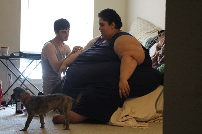 美國(guó)德克薩斯州休斯頓有個(gè)名叫貝蒂的女子體重高達(dá)600斤。造成這個(gè)年僅24歲女人如此肥胖的原因是其飲食習(xí)慣,她酷愛(ài)炸雞和烤肉醬。因體重過(guò)大,這位女子非但無(wú)法出門(mén),就連上廁所、洗澡和吃飯都要丈夫Josh伺候。