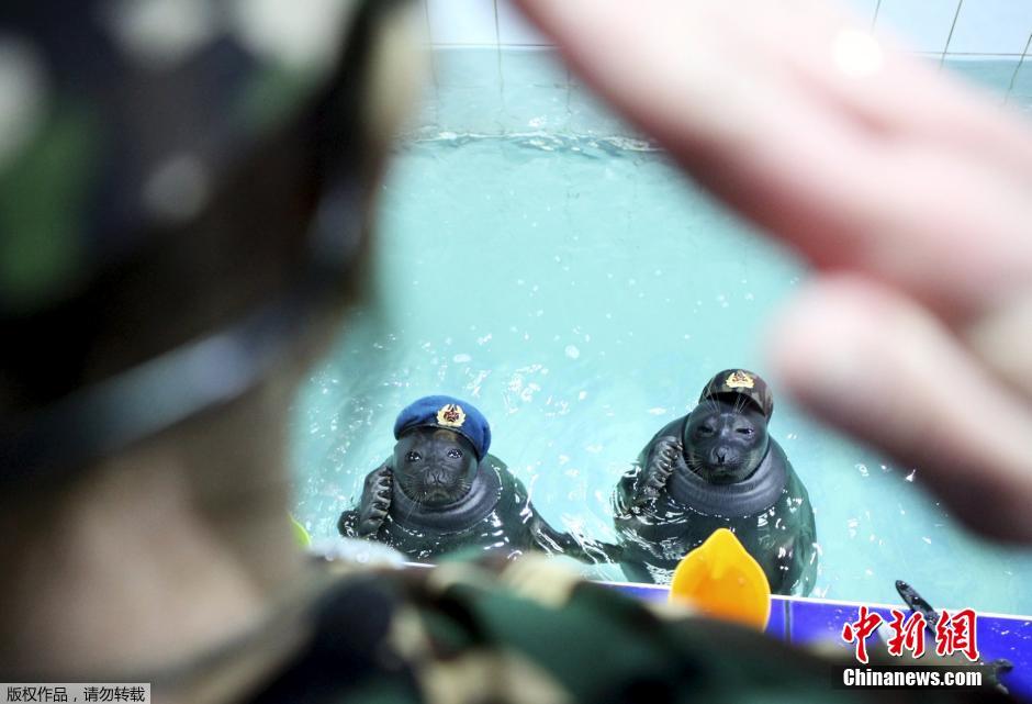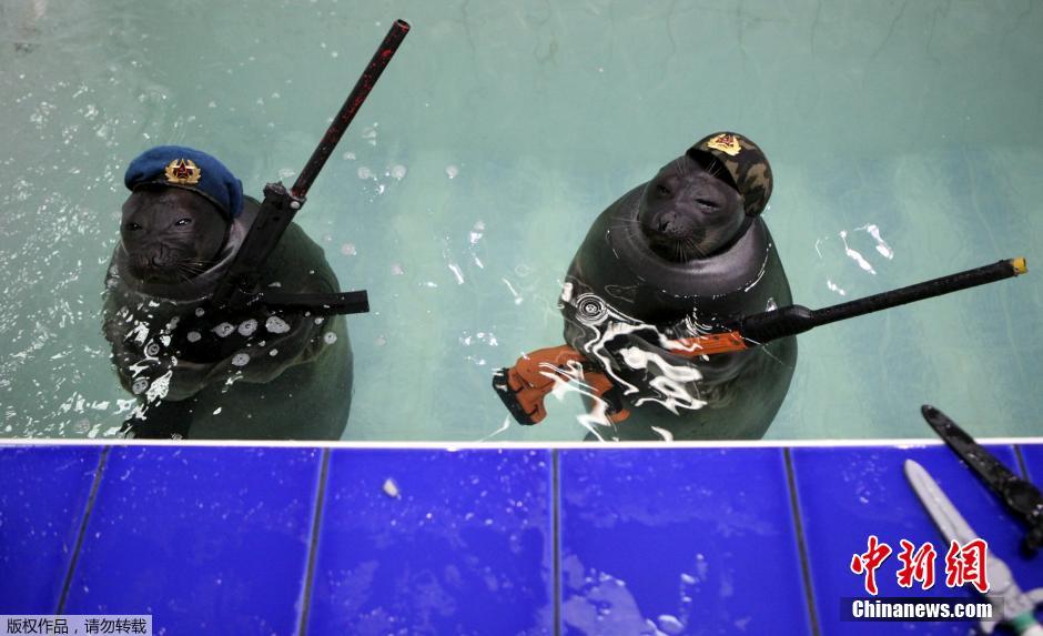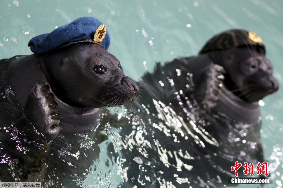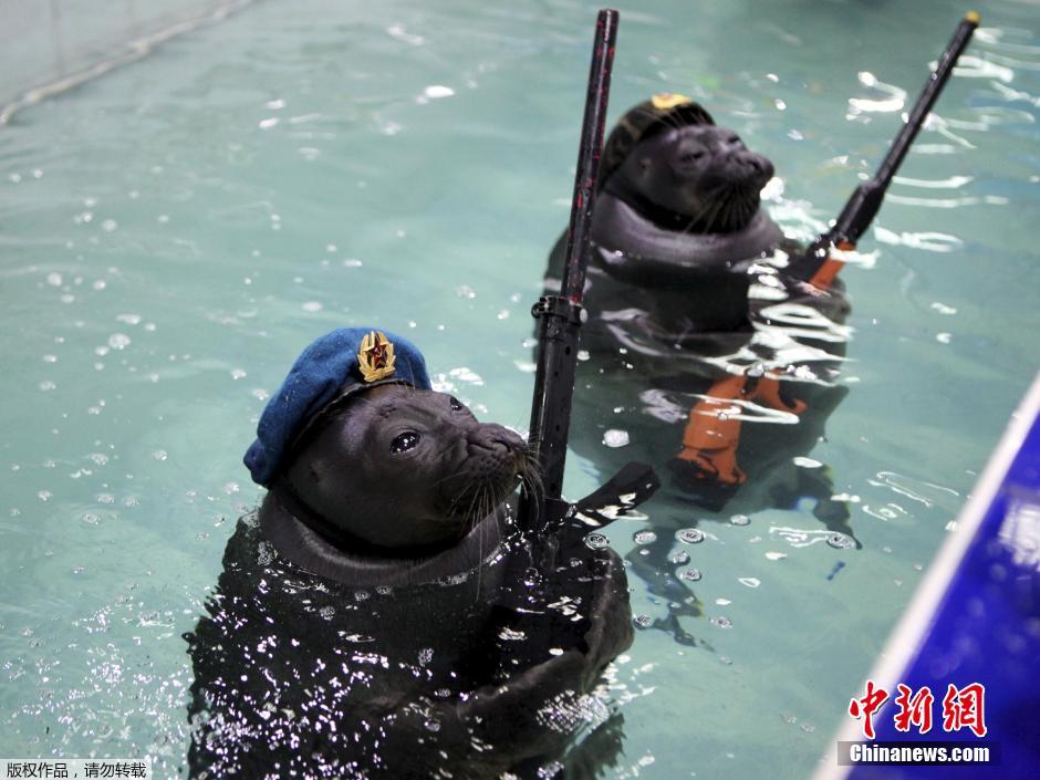 當地時間5月9日,莫斯科紅場舉行盛大閱兵式慶祝衛(wèi)國戰(zhàn)爭勝利70周年。在俄羅斯的伊爾庫茨克水上公園里,海豹們也身著“軍裝”認真的在水中列隊接受訓練員的檢閱。