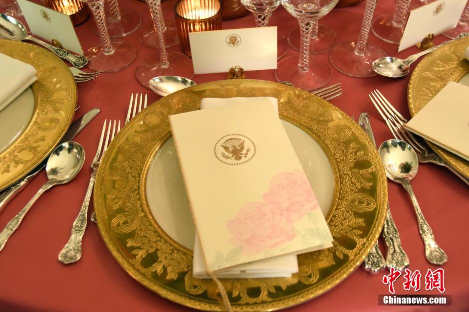 當(dāng)?shù)貢r間9月24日,美國白宮第一夫人辦公室發(fā)布了白宮為中國國家主席習(xí)近平和夫人彭麗媛舉行的國宴的菜單,并介紹了餐桌布置等情況。據(jù)這份菜單,紹興黃酒和南瓜月餅將亮相國宴。此外,白宮還邀請了華裔名廚參與此次國宴的準(zhǔn)備。 中新社記者 刁海洋攝