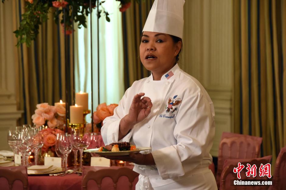 當(dāng)?shù)貢r間9月24日,美國白宮第一夫人辦公室發(fā)布了白宮為中國國家主席習(xí)近平和夫人彭麗媛舉行的國宴的菜單,并介紹了餐桌布置等情況。據(jù)這份菜單,紹興黃酒和南瓜月餅將亮相國宴。此外,白宮還邀請了華裔名廚參與此次國宴的準(zhǔn)備。中新社記者 刁海洋攝