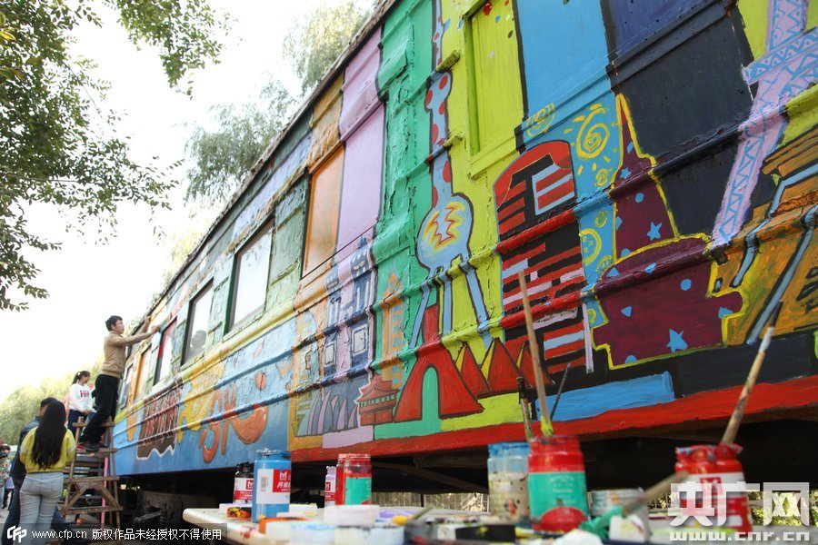 2015年10月10日,鄭州四禾美術(shù)中學(xué)充分發(fā)揮美術(shù)生的優(yōu)勢(shì),對(duì)火車(chē)車(chē)身1進(jìn)行涂鴉改造,使火車(chē)宿舍看起來(lái)更加漂亮。