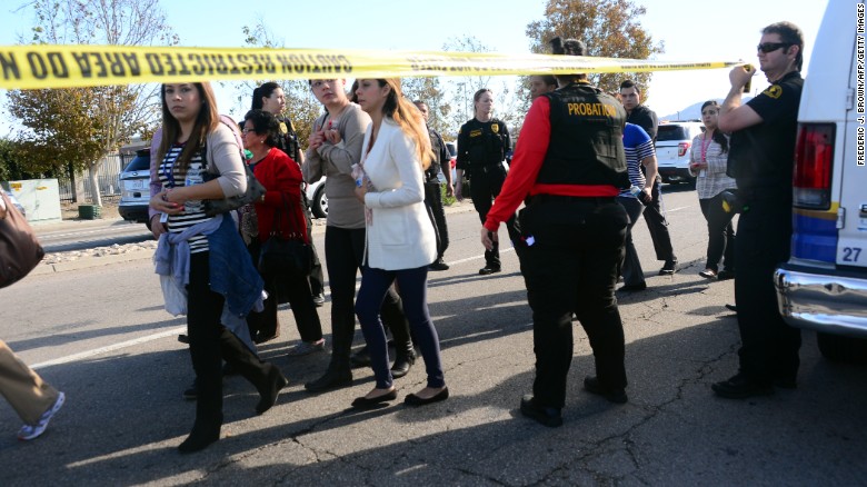 12月3日,美國(guó)加利福尼亞州的圣貝納迪諾(San Bernardino)發(fā)生槍擊,受害者多達(dá)20人,圖為當(dāng)局疏散人群。