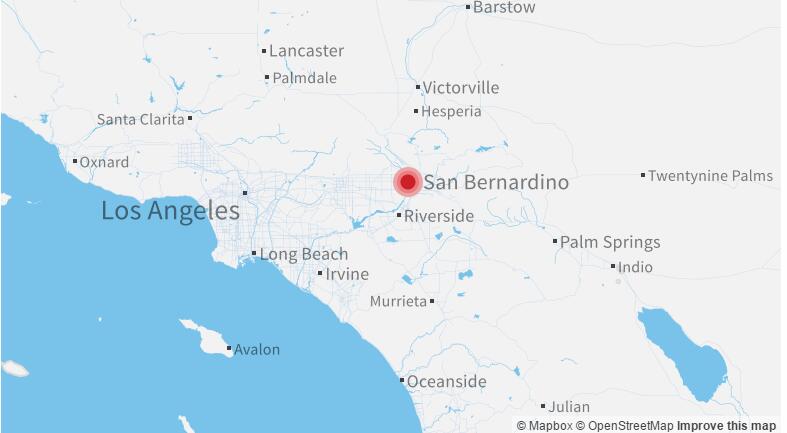 圣貝納迪諾是個(gè)有20多萬(wàn)人口的城市,位于洛杉磯東部約50英里。被襲擊的地區(qū)中心位于靠近市中心的地方。