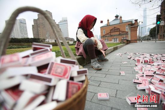 1月12日,上海外灘街頭出現(xiàn)一位小女孩,她身穿古典長(zhǎng)裙,頭裹赭紅色圍巾,挎著裝滿(mǎn)火柴的小竹籃,在寒風(fēng)中向過(guò)往的路人送小火柴。據(jù)了解,這是一次“愛(ài)心衣櫥”幫助中國(guó)山區(qū)孩子擺脫寒冷的愛(ài)心募捐活動(dòng)。在寒冷的冬天,他們嘗試以“賣(mài)火柴的小女孩”活動(dòng),喚起社會(huì)的關(guān)注,把更多的溫暖傳遞到中國(guó)山區(qū)寒冷孩子的手上。只要掃一掃火柴盒上的二維碼,就可以立刻向山區(qū)孩子送上一套溫暖新衣。張亨偉 攝