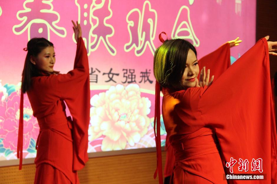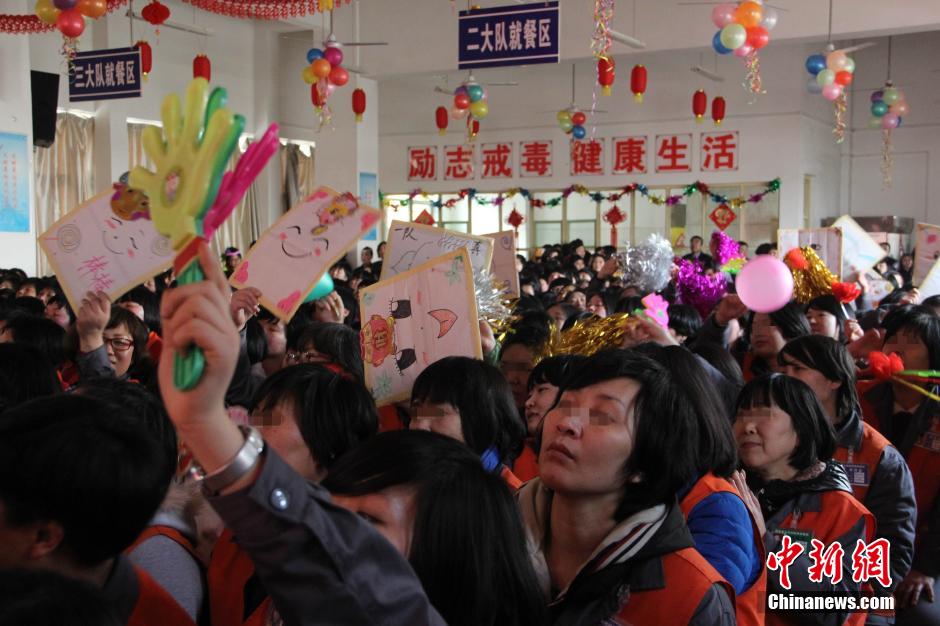 22日,適逢元宵佳節(jié),一場由民警和戒毒學(xué)員共同演繹的聯(lián)歡會在陜西省女強制隔離戒毒所舉行,通過歌舞、相聲、二人轉(zhuǎn)、小品等表演形式,鼓勵戒毒人員在新的一年,繼續(xù)增強戒毒意愿和決心,早日戒除毒癮回歸社會。圖為民警表演歌伴舞。 張一辰 攝