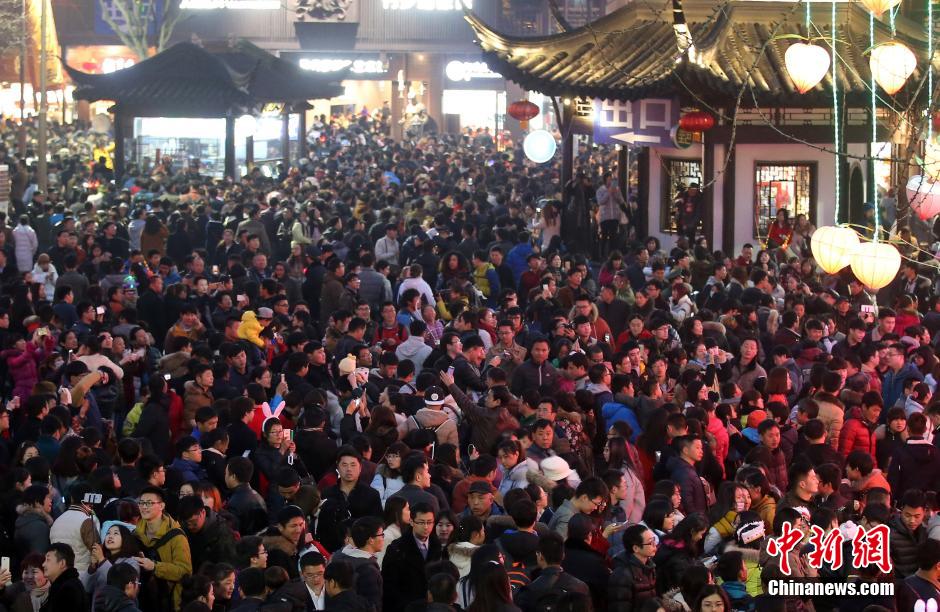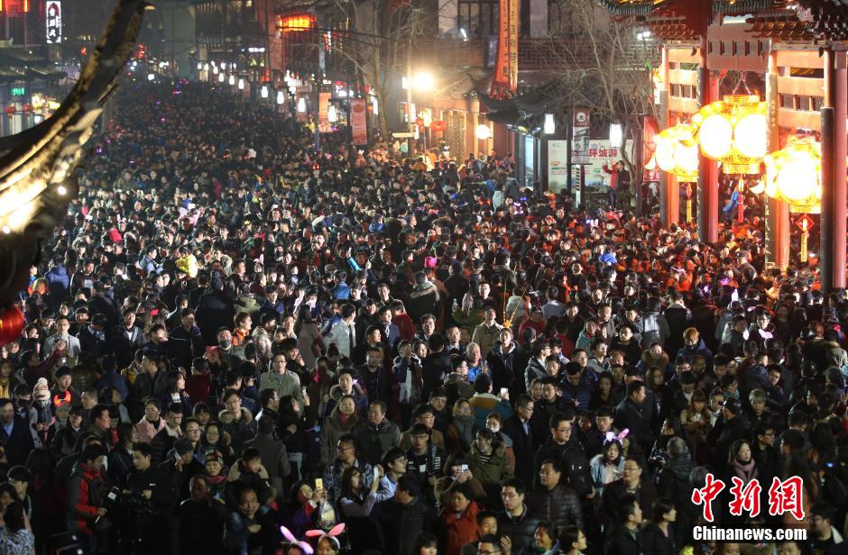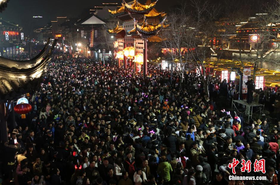 2月22日晚,南京夫子廟廣場上人山人海。當日是元宵節(jié),數(shù)十萬市民和游客涌進南京夫子廟景區(qū)內欣賞秦淮燈會,瞬間開啟“人從眾”模式。秦淮燈會又稱“金陵燈會”,是流傳于南京地區(qū)的特色民俗文化活動,主要在每年的春節(jié)至元宵節(jié)期間舉行。 中新社記者 泱波 攝