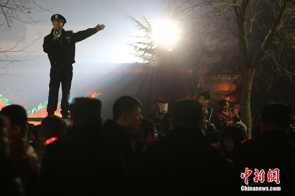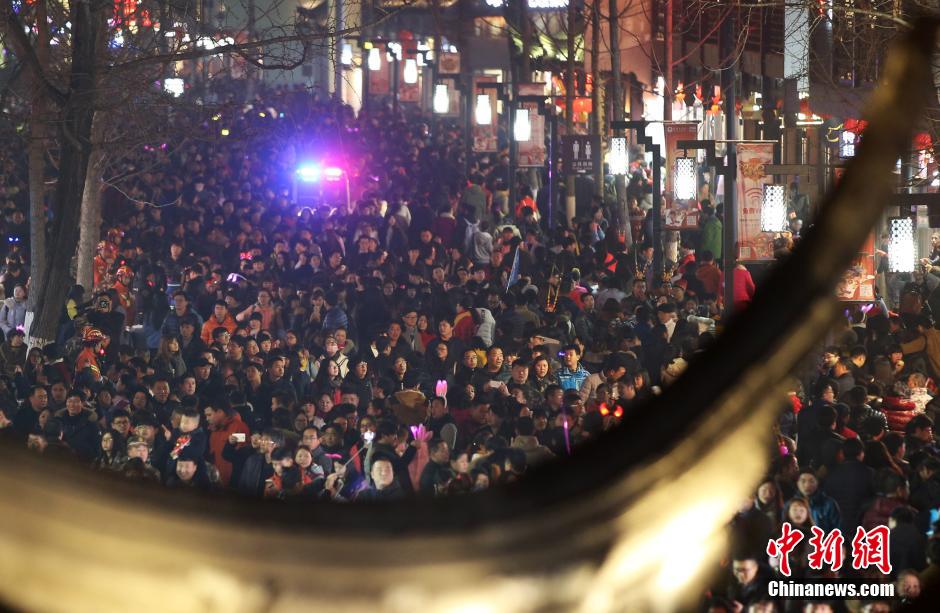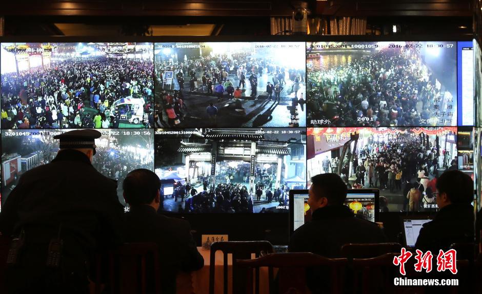 2月22日晚,南京警方在監(jiān)控涌進夫子廟廣場上的人流。 中新社記者 泱波 攝