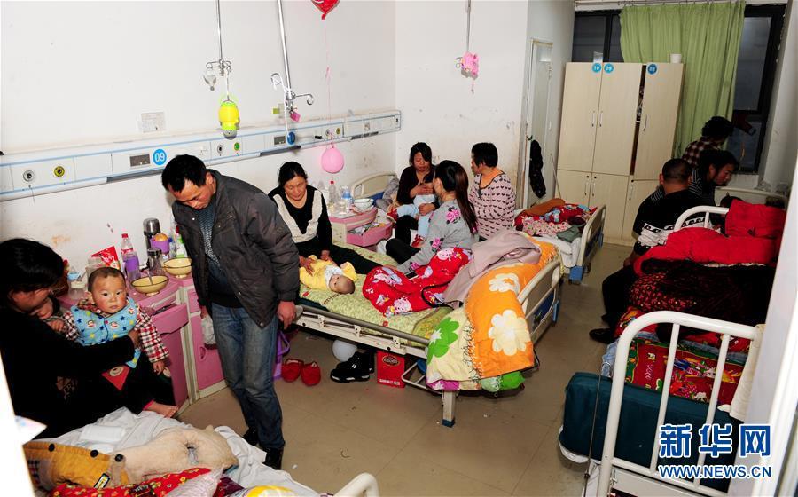 2月22日,在河南省開封市杞縣人民醫(yī)院,原本標(biāo)配3張床位的15平方米兒科病房被放置了5張床。病兒及家屬共計14人擠在狹小的空間里。新華社發(fā) 馮大鵬 攝 圖片來源:新華網(wǎng)