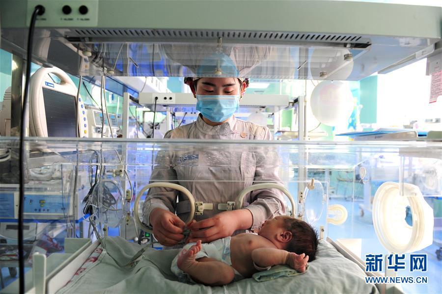 2月22日,在河南省商丘市柘城縣人民醫(yī)院,新生兒病區(qū)的護士在給一位嬰兒做護理。由于近年來早產(chǎn)兒逐漸增多,醫(yī)院的暖箱一直處于飽和狀態(tài)。新華社發(fā) 馮大鵬 攝 圖片來源:新華網(wǎng)