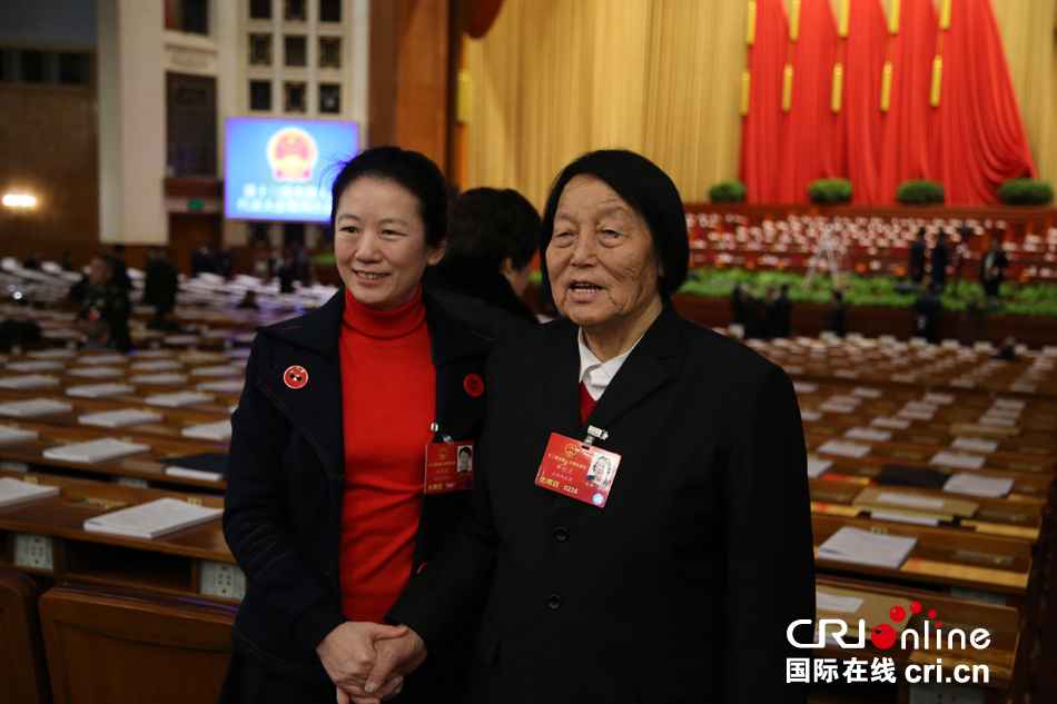 女人大代表代表申紀蘭出席全國人代會(右) 攝影:鄧晨曦