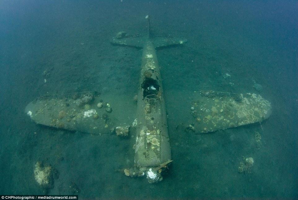 這些曾經(jīng)參與世界大戰(zhàn)的戰(zhàn)斗機(jī)如今安靜的躺在所羅門群島大海185英尺(約56米)的淺層海床上。今夕形成了鮮明的對比,英勇的美國F6F地獄貓戰(zhàn)斗機(jī)上覆蓋了大量的珊瑚。