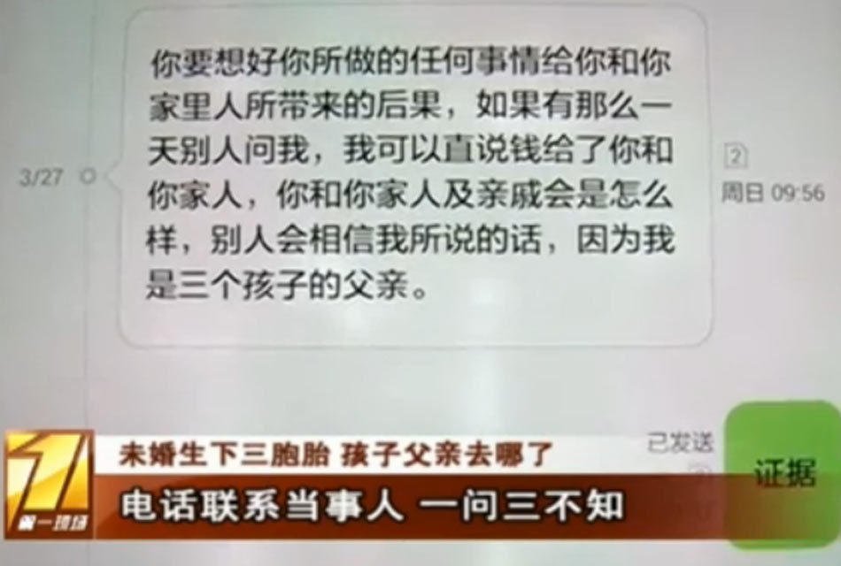 根據(jù)馬先生提供的三胞胎出生證明,孩子父親一欄中寫的就是呂先生的名字,就是這個公司的總裁,兩個人的短信記錄上,呂先生也承認(rèn)這三個孩子的身份。為了進(jìn)一步核實(shí)情況,記者也聯(lián)系上這位呂先生。但對記者問什么,馬先生都說不知道。