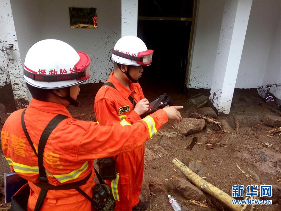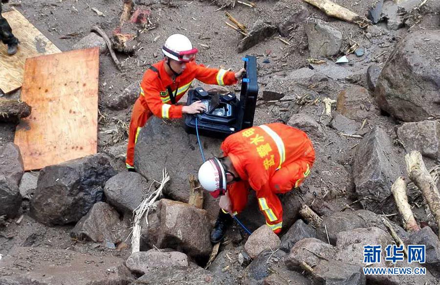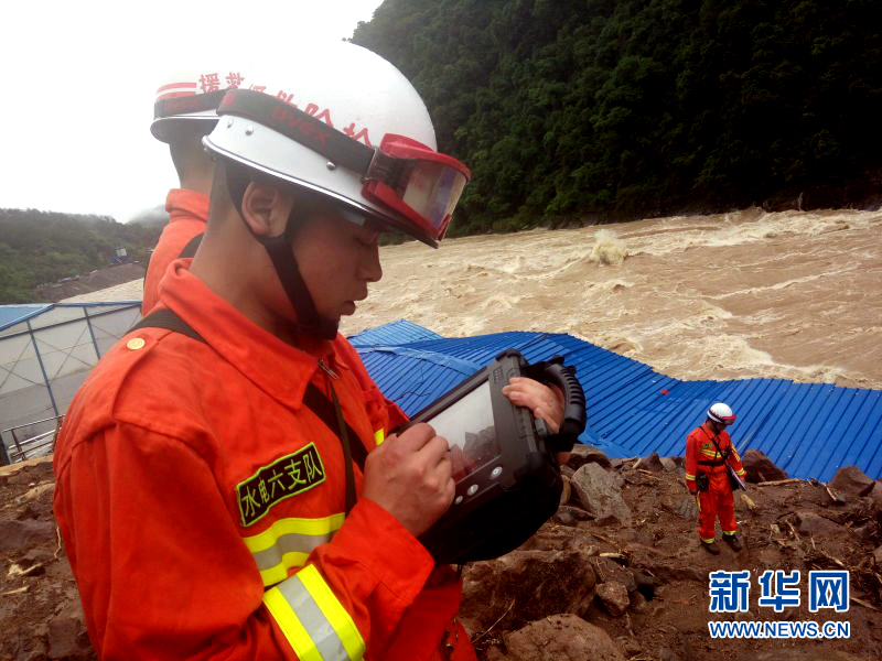 5月8日,在福建泰寧山體滑坡救援現(xiàn)場,武警水電二總隊六支隊官兵利用“雷達(dá)生命探測儀”對任務(wù)區(qū)進(jìn)行搜救(手機(jī)拍攝)。