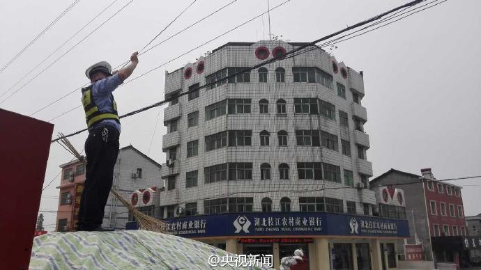近日,在湖北宜昌一路段,電信光纜被風(fēng)刮斷,導(dǎo)致道路擁堵。交警董金橋?qū)⒐饫|奮力托起,留出空間保障車輛通行。一個多小時后,電信工作人員趕到搶修,直到線纜復(fù)位,董金橋才放下手臂休息。 央視記者 魏軼 圖片來源:央視新聞官方微博