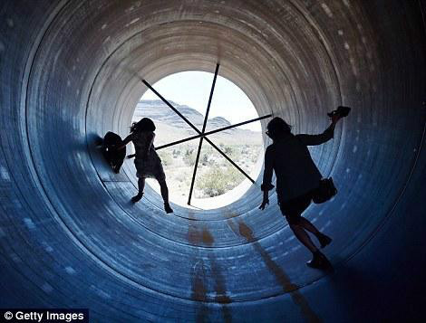 圖為Hyperloop One公司超級高鐵模型遠景,他們正在與另一家公司競爭,爭取首先開發(fā)出改變?nèi)藗兩畹某咚倭熊嚒?/p>