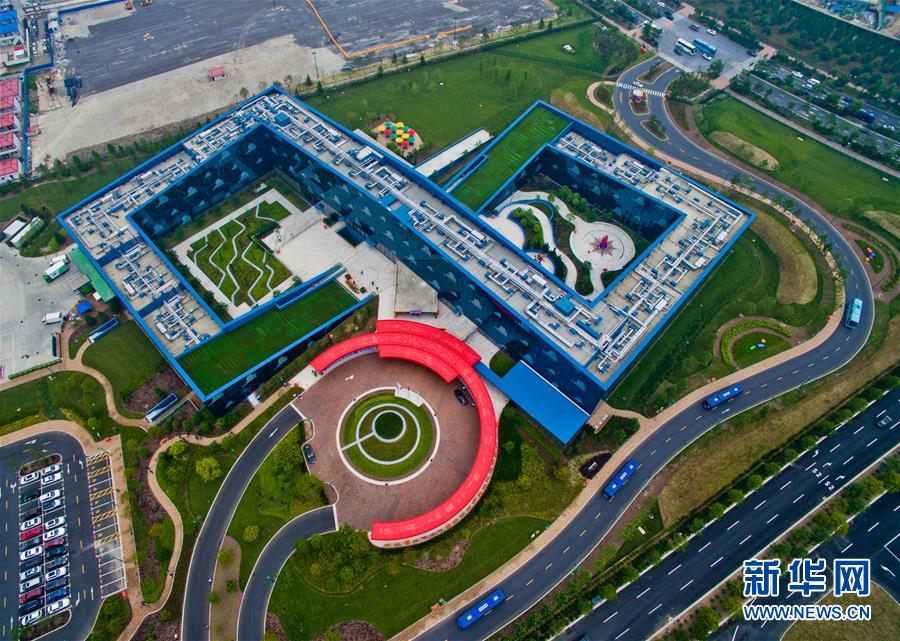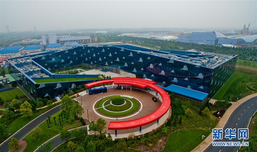 5月15日從空中俯瞰上海迪士尼玩具總動(dòng)員酒店。當(dāng)日,上海迪士尼主題酒店之——玩具總動(dòng)員酒店大堂、廣場(chǎng)、餐廳、度假區(qū)短駁車等區(qū)域及設(shè)施開(kāi)始內(nèi)部測(cè)試。這家共有800個(gè)房間的主題酒店將于6月中旬正式迎客。新華社發(fā)(鈕一新 攝)