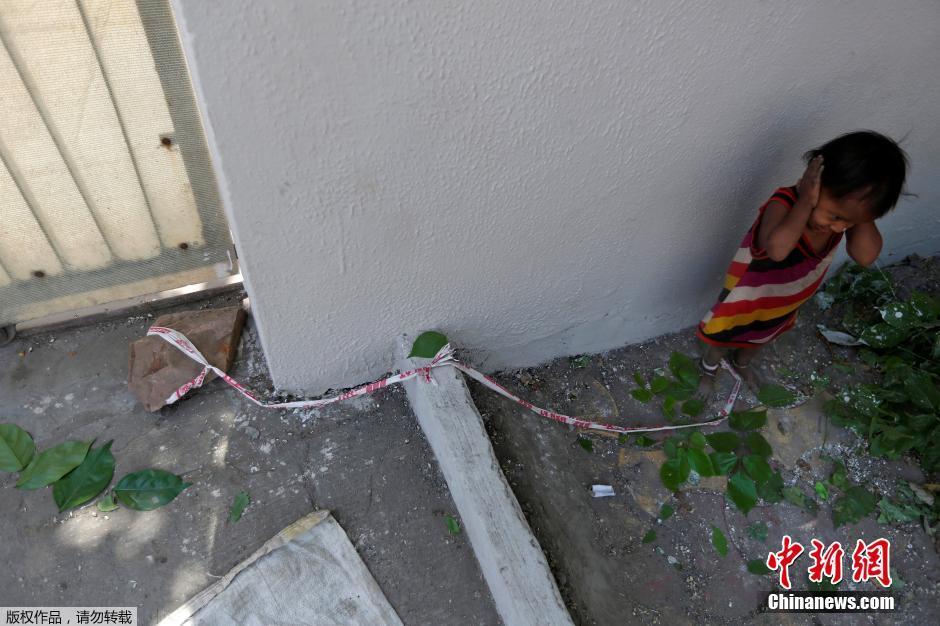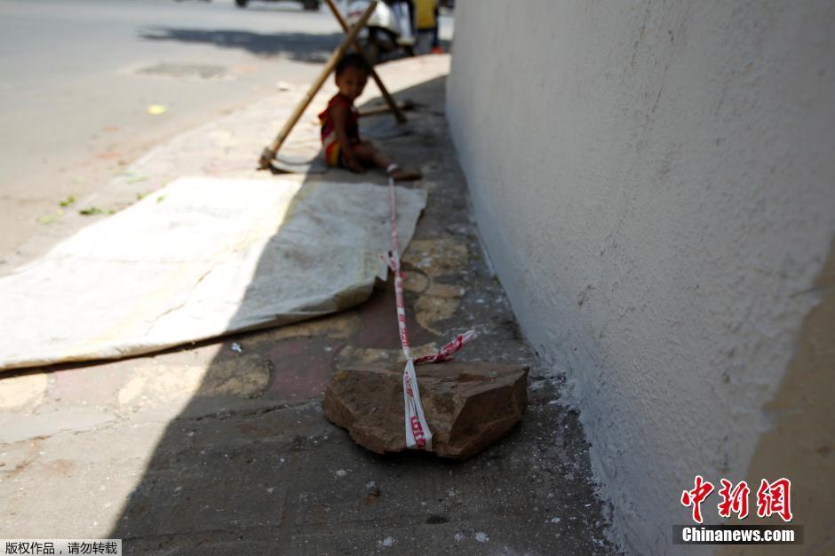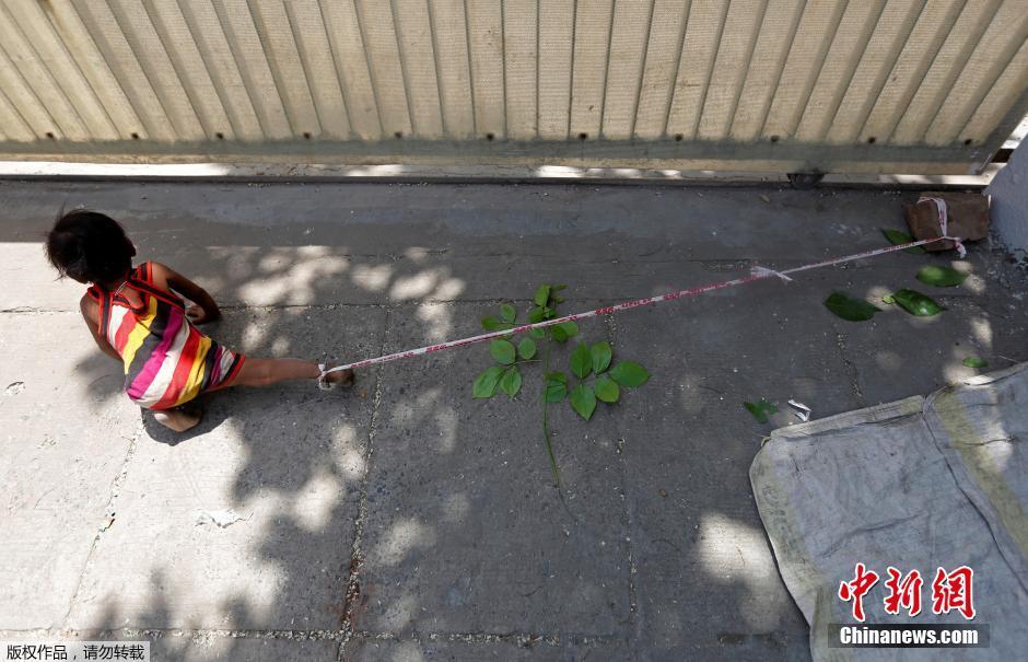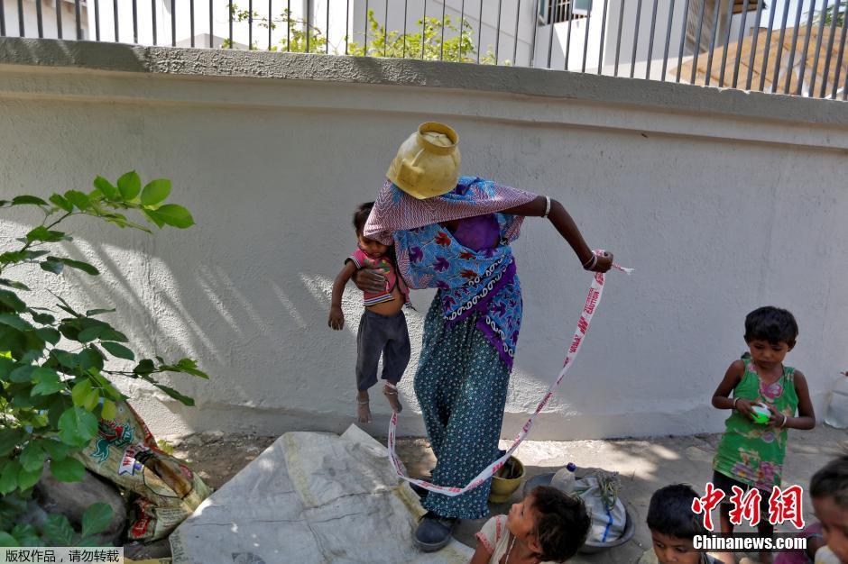 5月18日消息,印度艾哈邁達(dá)巴德,印度婦女Sarta Kalara用帶子綁住15個(gè)月大女兒的腳踝拴在固定的地方防止其亂跑,Kalara在附近的一個(gè)建筑工地工作,為了安全想出這樣的方法,盡管孩子哭鬧,但她稱別無辦法。