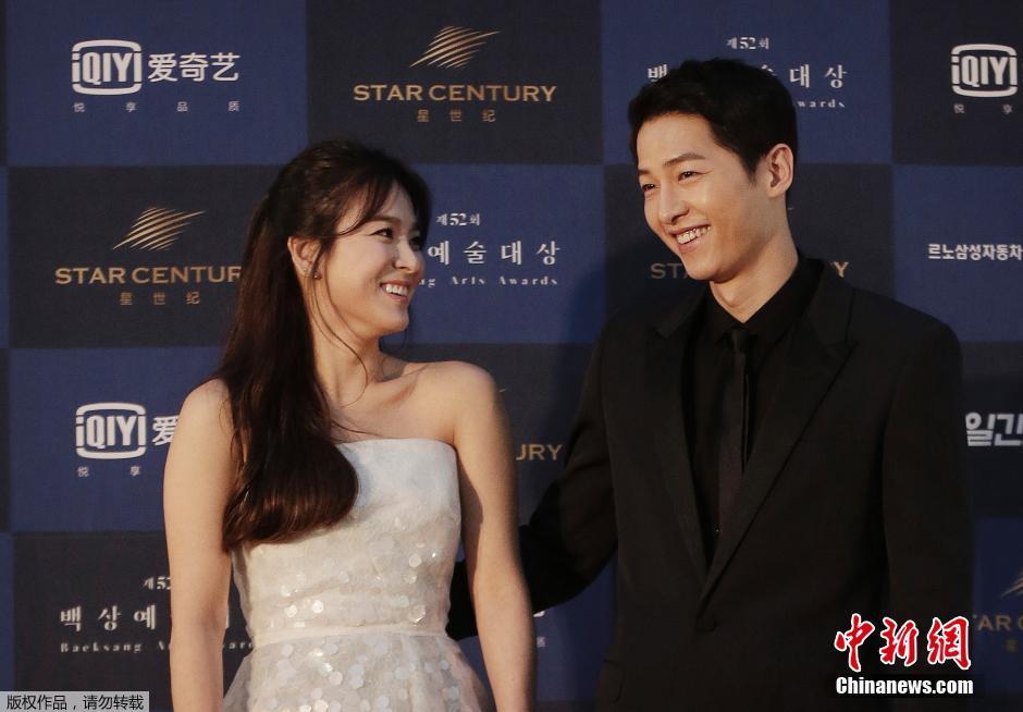 當?shù)貢r間6月3日,韓國年度電視、電影盛事“第52屆百想藝術大獎”在韓國首爾的慶熙大學登場,宋仲基和宋慧喬憑借《太陽的后裔》一舉拿下人氣大獎。宋仲基更在臺上感動告白搭檔宋慧喬“謝謝在我身邊的宋慧喬”。