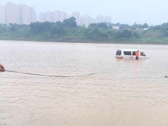 消防員趕到現(xiàn)場發(fā)現(xiàn)一輛金杯車位于江上,一名群眾正在竭盡全力往岸邊靠近??紤]到江水十分冰冷,被困人員在江水中浸泡已久,隨時可能引發(fā)抽筋,增加救援難度。消防員穿好救生衣和防護裝備之后,立即下水營救該名司機,天空下著大雨,為救援工作增加了難度。在經(jīng)歷了15分鐘左右的救援之后,成功將司機救上岸。但是車子依然浸泡在水里,車內(nèi)有大部分積水,坐墊也已然被淹沒,現(xiàn)場指揮員立即下達(dá)作戰(zhàn)命令,趕緊將車子拉到岸邊,在一眾熱心群眾和消防員的共同努力下,車子也成功抵達(dá)岸邊。