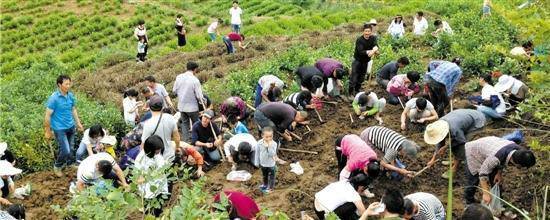 瘋狂到什么程度呢?據(jù)說,不止本地村民,很多新昌人也加入了挖寶的隊列;不僅白天挖,據(jù)說夜里也有不少人在挖,理由是聽說寶石在夜里的燈光照射下能反光,反而更好找;不僅大人挖,小孩和老人的身影也很多。潘先生說,由于是在地里挖的,難免造成一些茶樹,以及玉米、西瓜、花生等莊稼被毀,當?shù)卮迕駷榇艘庖姾艽?,但對如潮的尋寶人流,又有些無可奈何。