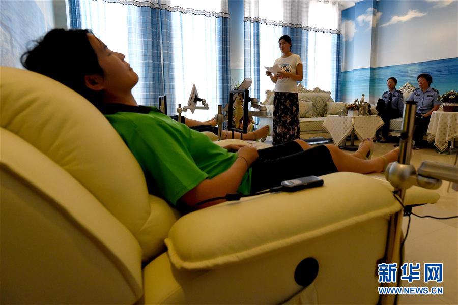 6月26日是國(guó)際禁毒日,今年的主題是“無毒青春健康生活”。在禁毒日前夕,記者走進(jìn)了河南省唯一的女子強(qiáng)制隔離戒毒所及唯一的未成年人強(qiáng)制隔離戒毒所。近年來,戒毒所注重對(duì)戒毒人員的溫情關(guān)懷救助,搭建戒毒治療綜合性平臺(tái),努力為戒毒人員打造“溫馨之家”,設(shè)置了瑜伽室、健身室、心理咨詢室等場(chǎng)所,通過開展各種體育鍛煉、心理咨詢、職業(yè)技能培訓(xùn)以及社會(huì)適應(yīng)性教育等活動(dòng),幫助戒毒人員強(qiáng)化體能、修復(fù)身心損害,使他們可以盡快走出困境,融入社會(huì)。新華社記者 李安 攝