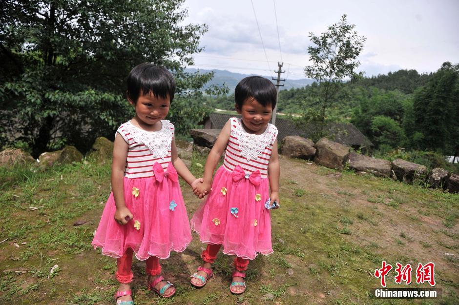 7月5日,重慶市江津區(qū)青堰村11對雙胞胎相聚一起合影。據(jù)悉,青堰村共有367戶人家,其中就有39對是雙胞胎。雙胞胎中年齡最大的已有89歲。圖為青堰村的雙胞胎小女孩。陳超 攝