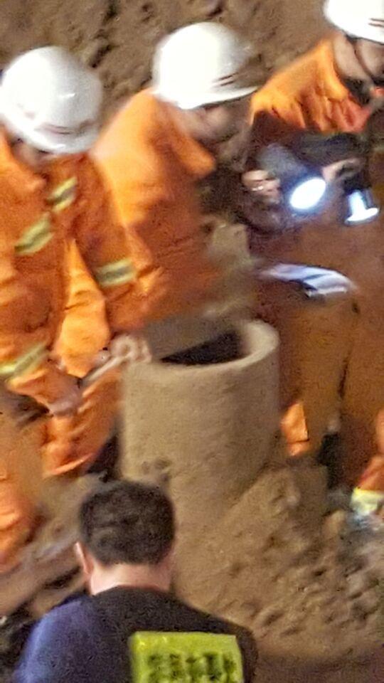 幸運(yùn)的是,女童生命體整正常,救援人員用瓶子給其輸入牛奶食品。家屬正疏導(dǎo)孩子的情緒,現(xiàn)場(chǎng)100多人正全力救援。