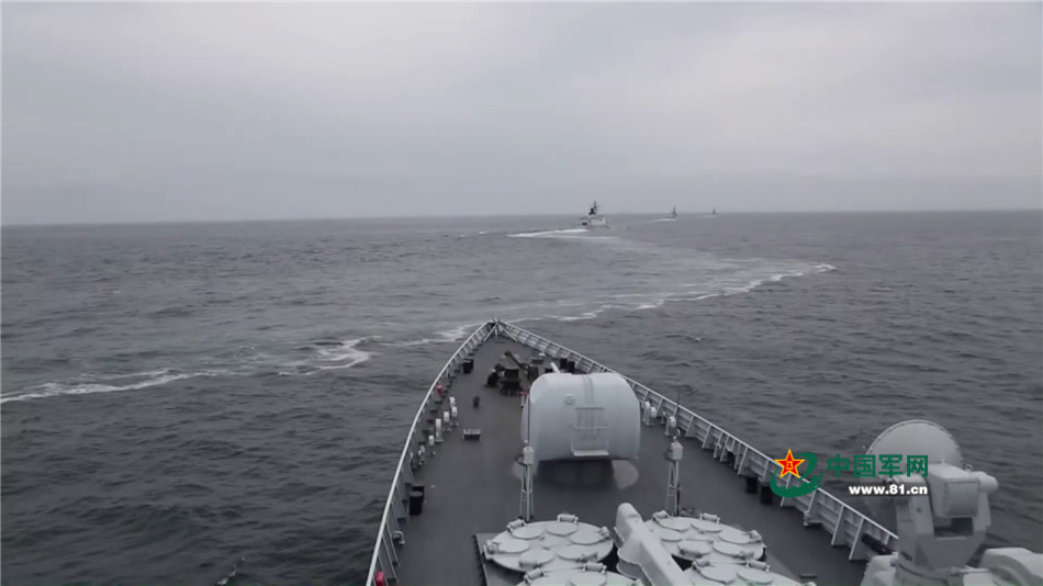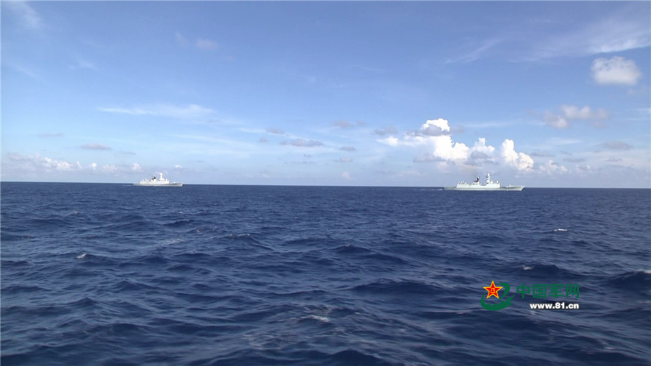 紅方艦艇編隊指揮艦合肥艦上,急促的警報聲驟然響起,“報告,發(fā)現(xiàn)空中目標向我飛近!”合肥艦駕駛室,某驅(qū)逐艦支隊參謀長鐘博文沉著冷靜指揮,紅方編隊迅速采取反干擾措施,雷達、通信等戰(zhàn)位重新恢復(fù)工作,并在空中預(yù)警兵力的協(xié)同下,合肥艦及時偵獲藍軍行動。圖為艦艇編隊。
